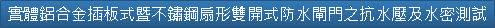 | 測試方法 | 由委託測試單位自行安裝防水閘門後,以固定124cm/hr上昇速率注水, 各於水深153cm或190cm處測量閘門漏水量及閘板變形量。 |